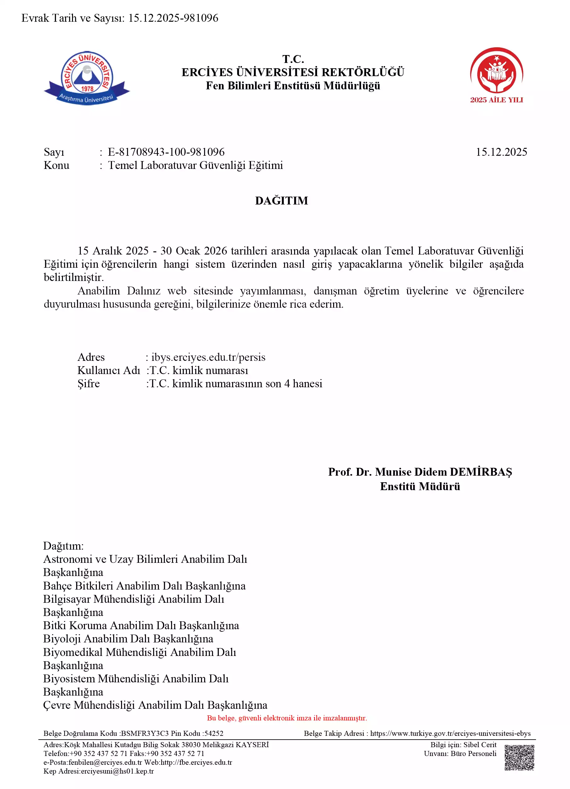 Lisansüstü Öğrencilerin Dikkatine (Zorunlu: Temel Laboratuvar Eğitimi)