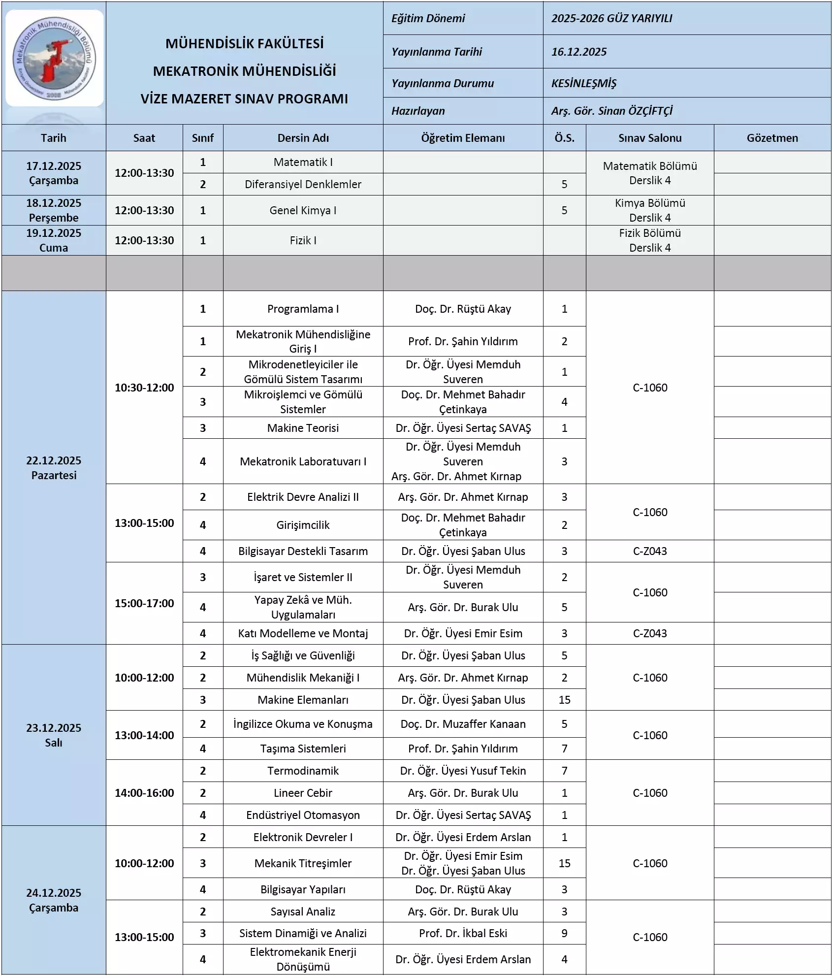 Sınav Programına Buradan Ulaşılabilir.