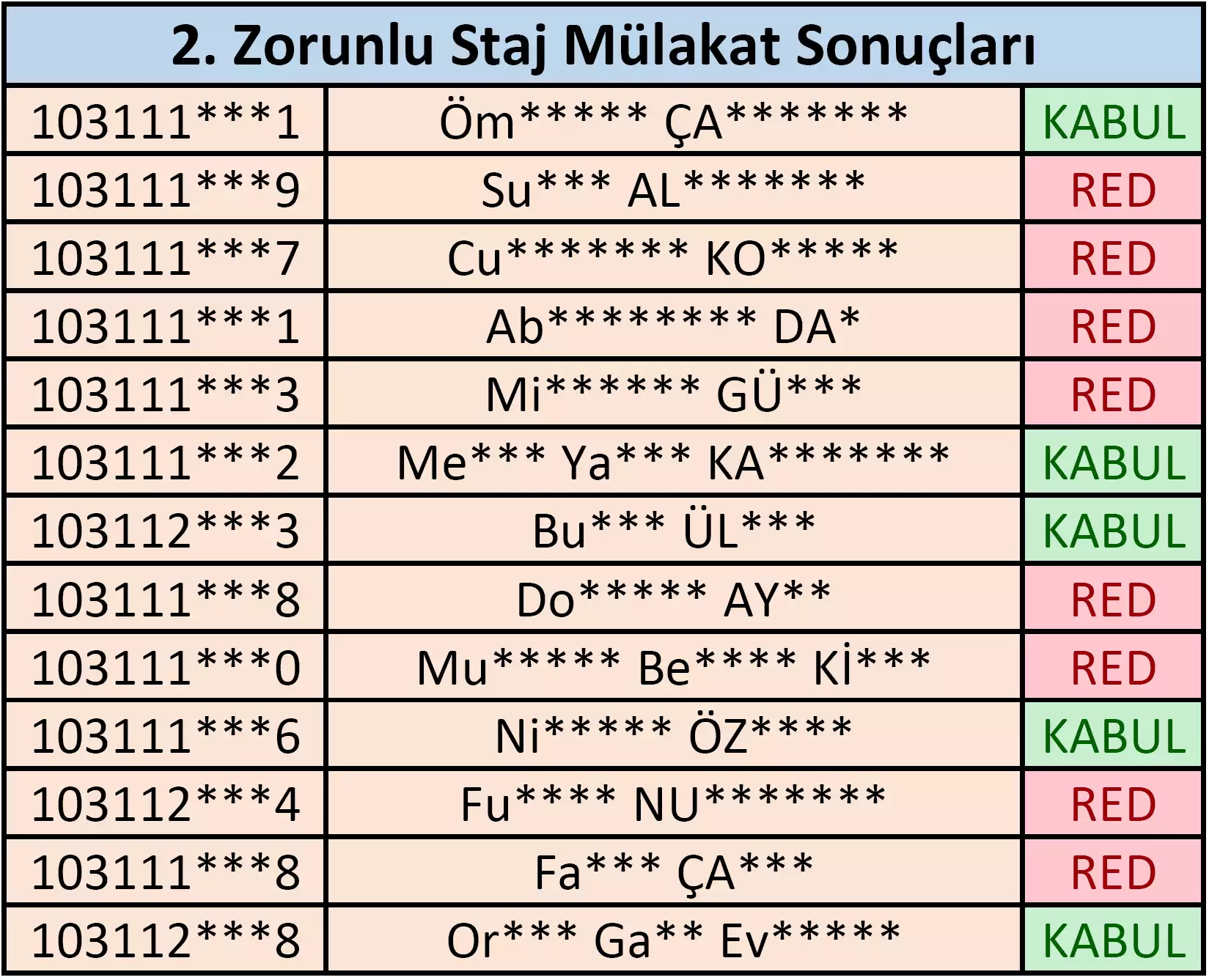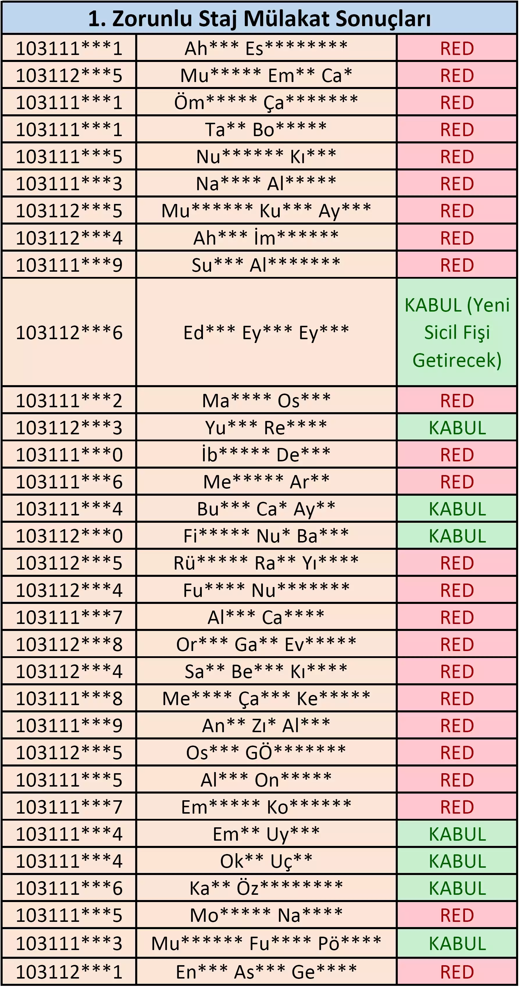 Staj Mülakat Sonuçları